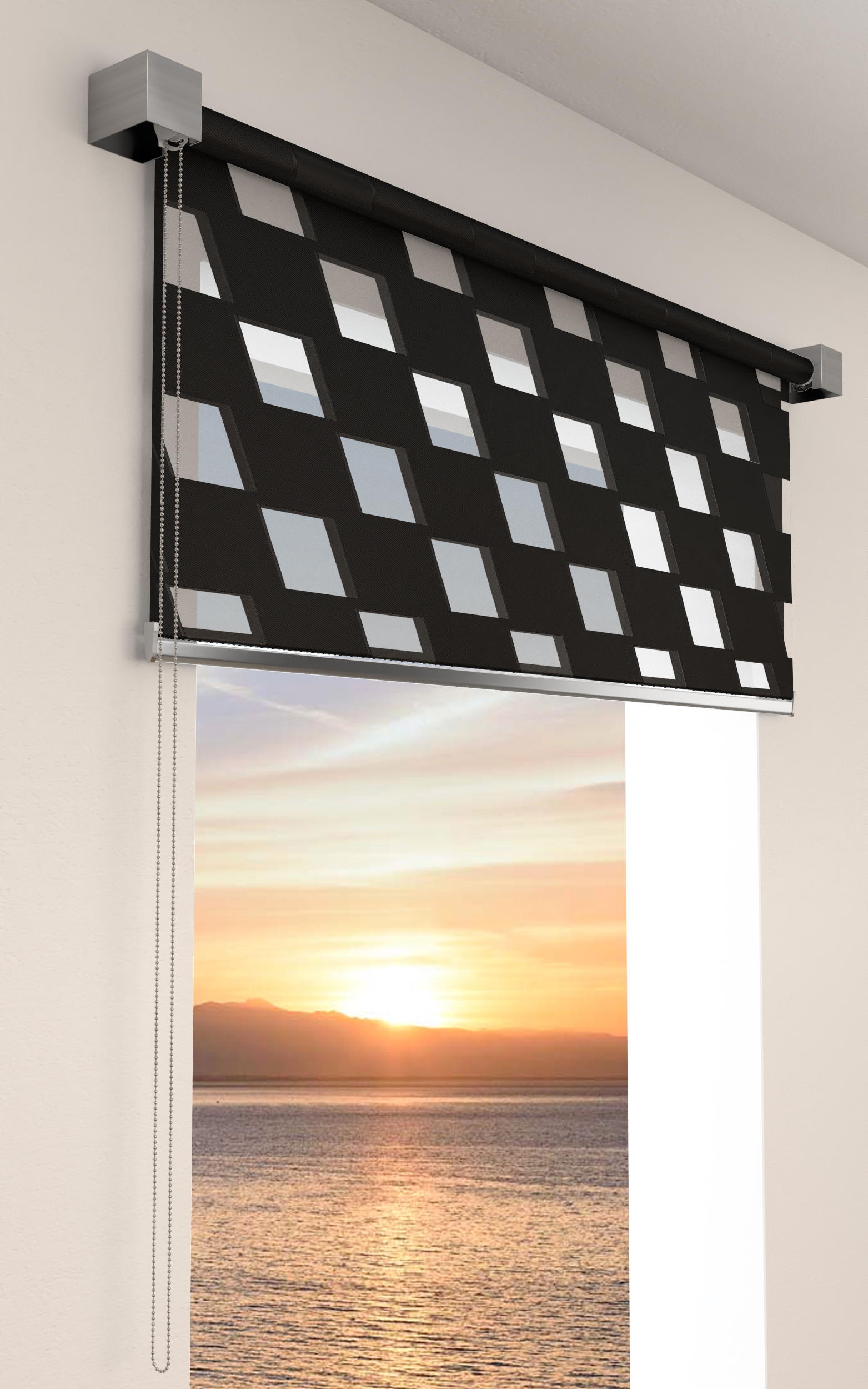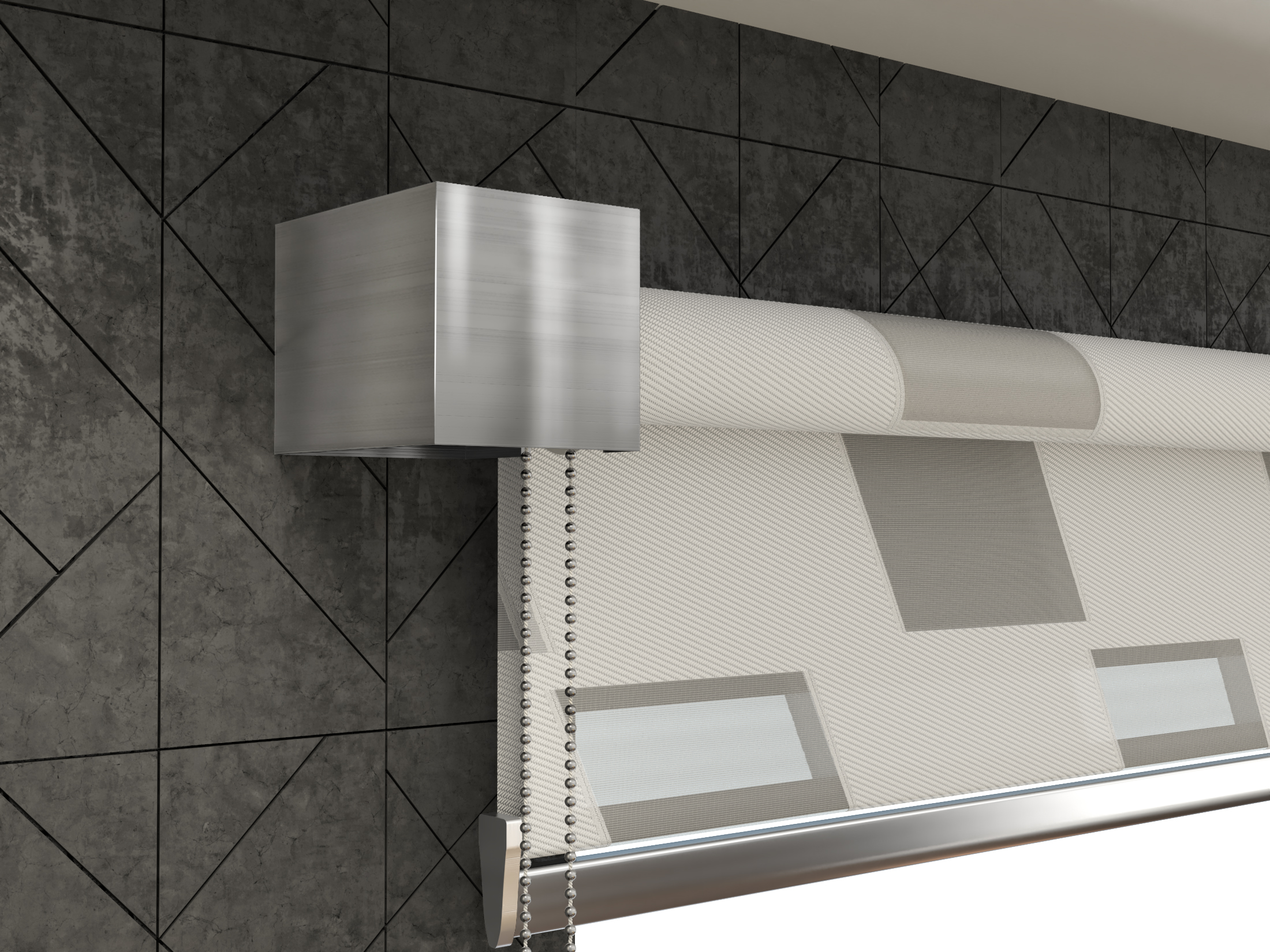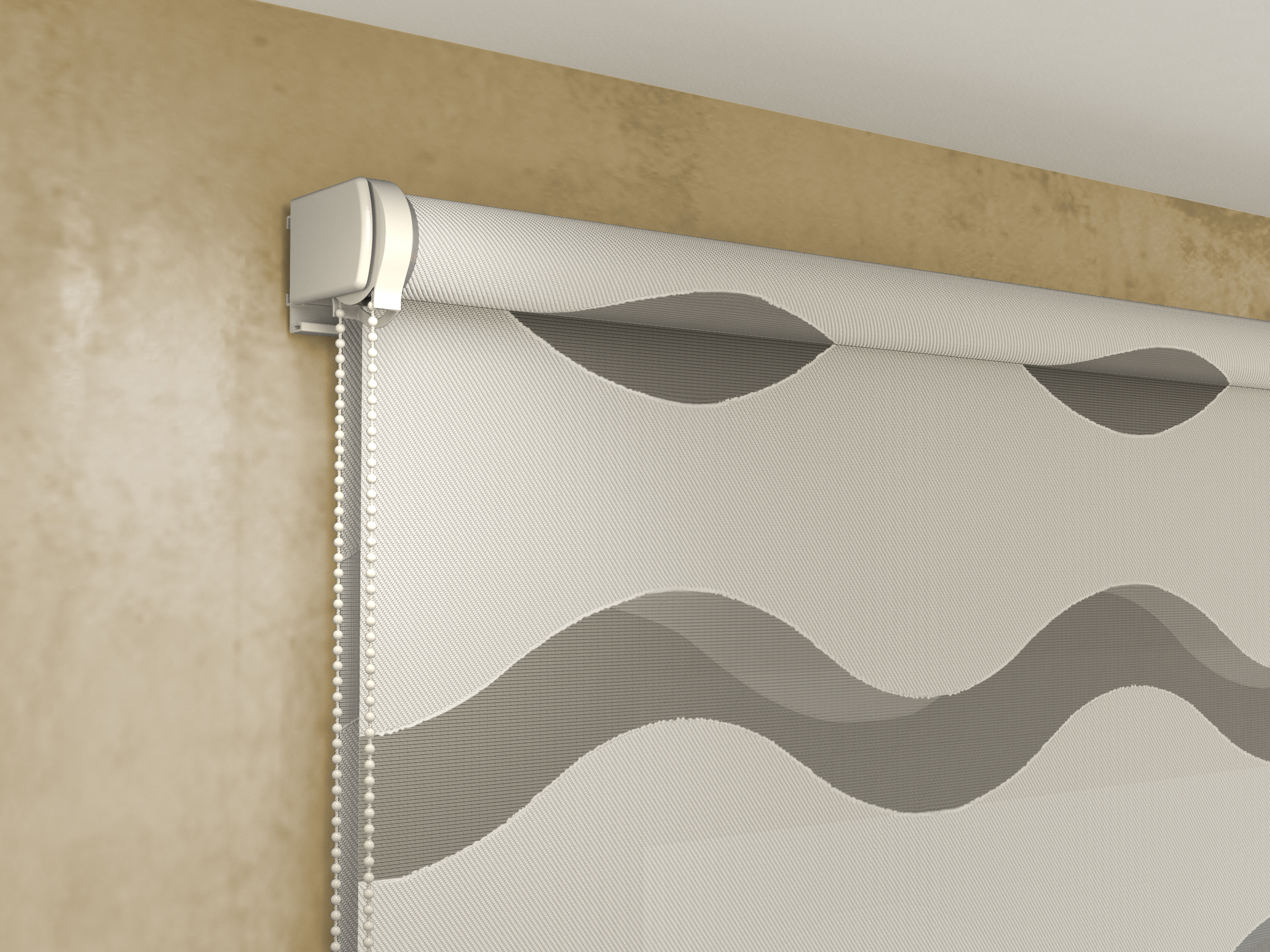 Le morbide alette orizzontali in tessuto che galleggiano su un supporto a strapiombo consentono a questa fantastica tipologia di tenda a rullo, la Night and Day 3D, di ottenere infinite combinazioni di controllo della luce, visione e privacy.